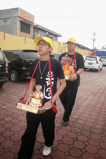 Upacara tersebut berlangsung sekitar 45 menit. Sekitar pukul 11.30, seluruh peserta kirab membawa masing – masing pratima tersebut menuju ke Bukit Siguntang. Semua peserta kirab membawa pratima dengan cara meletakkan pratima tersebut di atas nampan dan diikat dengan kain merah pada pegangan nampan tersebut lalu kain itu di kalungkan ke leher masing-masing peserta. Ada sekitar 21 pratima yang di bawa dari kelenteng menuju ke Bukit Siguntang. Perjalanan dari kelenteng menuju Bukit Singguntang kira-kira 20 menit.